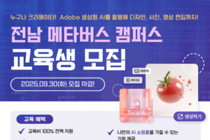 전남정보문화산업진흥원(원장 이인용)은 메타버스지원센터 사업의 일환으로, 오는 10월 13일부터 11월 26일까지 나주와 순천에서 ‘메타버스 캠퍼스’ 교육과정을 운영한다고 밝혔다.이번 교육은 전남도민, 메타버스 관련 기업 재직자, 관련 학과 재학생 등을 대상으로 한 온·오프라인 무료 과정이다. 교육생들은 가상융합산업(메타버스)과 생성형 AI의 이해, 생성형 AI를 활용한 콘텐츠 제작 기술을 체험‧습득할 수 있다. 신청은 구글 폼 작성, 포스터 내 QR코드를 통해 가능하다.‘전남 메타버스 캠퍼스’는 어도비 공인 자격증인 ACP 자격(A