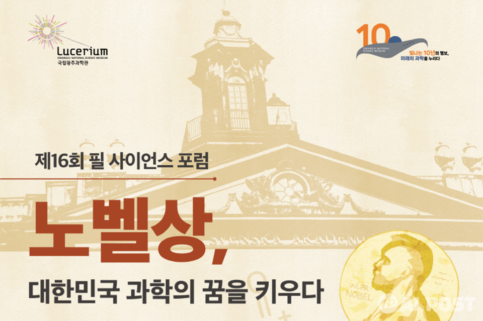 국립광주과학관(관장직무대리 전태호)은 한국과총 광주·전남지역연합회(회장 김창대)와 함께 10월 노벨상 수상자 발표와 연계해 ‘노벨상, 대한민국 과학의 꿈을 키우다’를 주제로 제16회 필 사이언스 포럼을 개최한다.