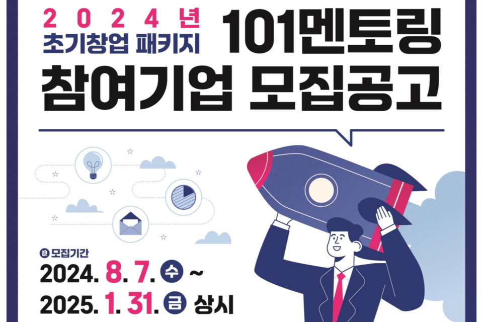 101멘토링 프로그램의 참가 신청은 내년 1월 31일(금)까지 2024년 초기창업패키지 선정기업을 대상으로 상시적으로 모집이 진행되며, 자세한 모집공고는 K-STARTUP 홈페이지를 통해 확인 할 수 있다.
