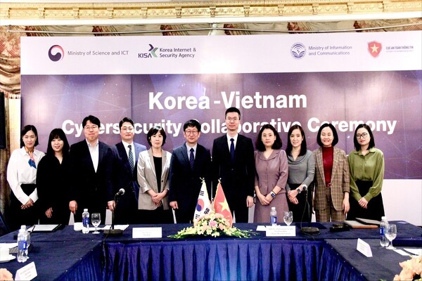 또 KISA와 베트남 정보통신부 정보보안청(AIS)은 업무협약을 통해 ▲사이버보안 전문가 교환 ▲사이버보안 정책·규제 등 정보 공유 ▲양국 CERT 간 협력 증진 ▲역량강화 협력 및 사이버보안 인식제고 경험 공유 ▲세미나·컨퍼런스 개최 등에 상호 협력할 계획이다.
