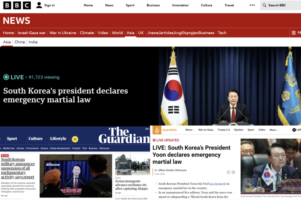 BBC와 CNN, 로이터 통신 등 주요 외신들은 윤석열 대통령의 비상계엄 선포를 긴급 타전했다.