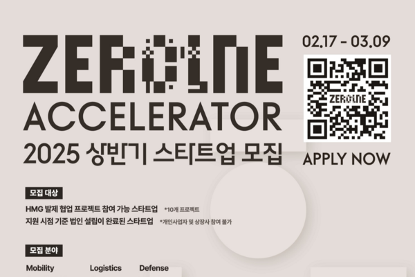 현대자동차그룹이 오픈 이노베이션 플랫폼 ‘제로원’을 통해 우수한 역량을 가진 사외 스타트업을 발굴하는 ‘제로원 액셀러레이터(ZER01NE ACCELERATOR)’의 2025년 상반기 공개 모집을 17일(월)부터 시작한다.