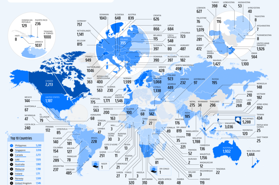 각 도구의 월별 구글 검색량을 기록하고, 각 국가의 전체 검색량을 합산한 다음, 각 분야에서 구글의 검색 엔진 시장 점유율을 기준으로 인구 10만명당 검색량을 계산하는 방식으로 순위를 매겼다. 집계된 자료에 따르면 생성 AI 도구 검색량은 필리핀(5,288건)이 가장 많았고 싱가포르(3,036건)와 캐나다(2,213건)가 그 뒤를 이었다.