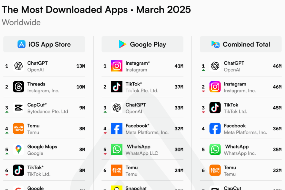 챗GPT의 3월 신규 다운로드 수는 2월 대비 28% 증가했다. 이로써 신규 다운로드 부문에서 처음으로 인스타그램과 틱톡을 모두 넘어섰다. 이미지 생성 기능을 대대적으로 업그레이드한 점이 신규 이용자 유치에 큰 역할을 했다는 평가가 나온다.