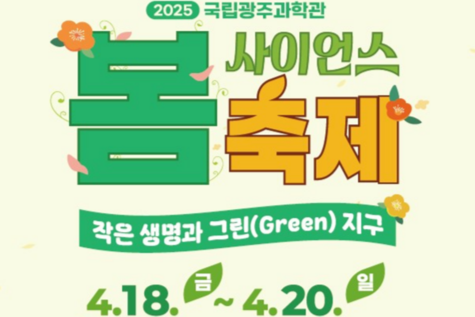 국립광주과학관(관장 이정구)은 4월 따스한 봄날을 맞이하여 자연의 중요성과 생물의 소중함을 체험할 수 있는 ‘2025 사이언스 봄축제 : 작은 생명과 그린(Green) 지구’를 개최한다.