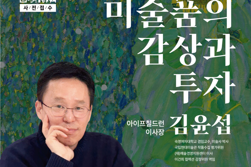 강연을 맡은 김윤섭 이사장은 숙명여자대학교 겸임교수, 국립현대미술관 평가위원, (재)예술경영지원센터 이사, 이건희 컬렉션 감정위원 등을 역임한 미술평론가다. 이번 강연에서는 ‘미술은 감상의 대상이자, 시대와 시장을 읽는 자산’이라는 관점에서 예술을 새롭게 바라보는 동시에 비즈니스와 예술의 접점을 모색하는 사례와 통찰을 공유한다.