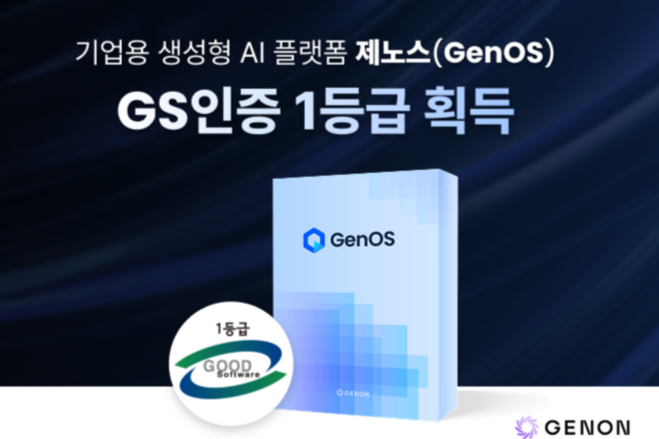 생성형 AI 솔루션 전문기업 제논(옛 마인즈앤컴퍼니, 대표 고석태)은 제논의 기업용 생성형 AI 플랫폼 ‘제노스(GenOS)’가 한국산업기술시험원(KTL)으로부터 굿소프트웨어(GS) 인증 1등급을 획득했다고 10일 밝혔다.