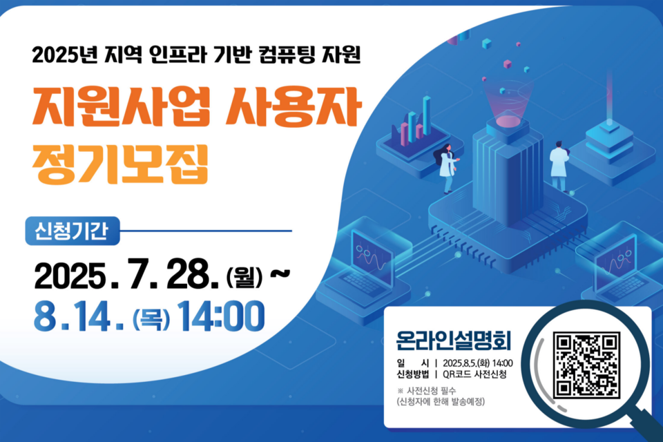 인공지능(AI) 개발에 필요한 고성능 컴퓨팅 자원을 제공하는 ‘2025년 지역 인프라 기반 컴퓨팅 자원 지원사업’의 정기 이용자를 모집한다.