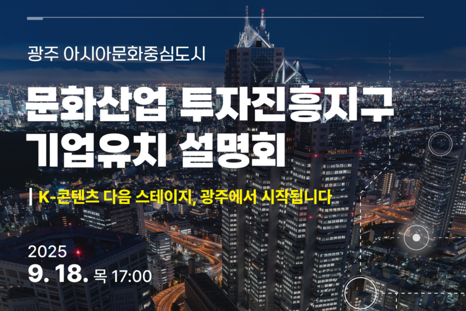 광주정보문화산업진흥원(원장 이경주, 이하 GICON)은 오는 18일 서울 코엑스에서 ‘문화산업 투자진흥지구 기업 유치 설명회’를 개최한다.